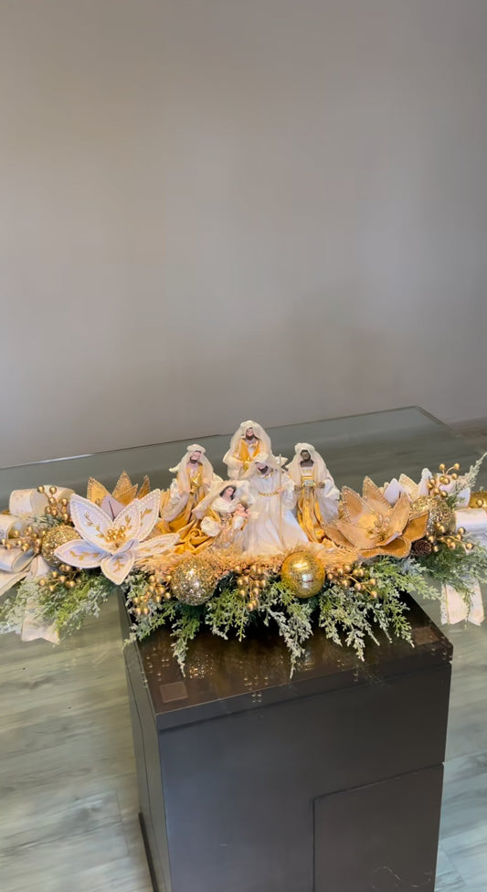 Presépio Natalino Luxo com Sagrada Família - Decoração Dourada