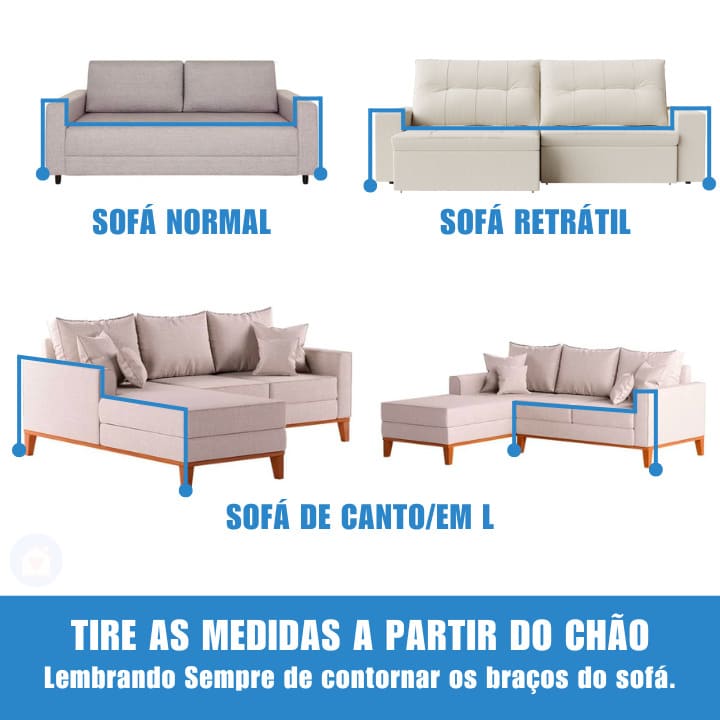Tire a medida de uma ponta a outra, Lembrando Sempre de contornar os braços do sofá.