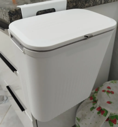 Mantenha sua casa sempre organizada com a Lixeira Suspensa Sem Furos, ideal para quem busca economia de espaço e facilidade na instalação.